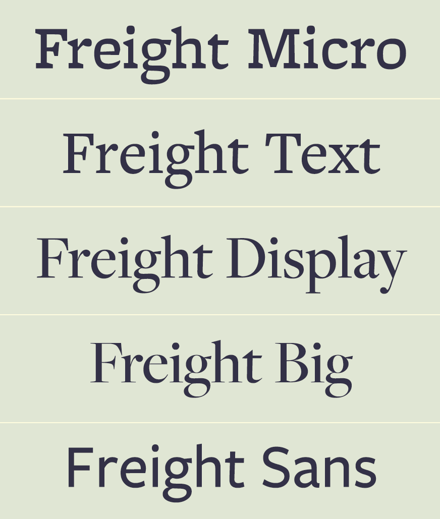 Freight has made a significant influence in the field of typography for many reasons. Freight offers a versatile, humanistic quality and extensive structure. It may not be the first typefaces to be developed and distributed as a superfamily, but it added and popula;ized this approach. This superfamily included serif (Freight Text), sans-serif Freight Sans), and display (Freight Display), micro (Freight Micro), and micro (Freight MIcro) versions. It set a trend with its comprehensive approach, including its multitude of optical ranges and stylistic diversities. Freight is created to work skillfully and provides the user a full typographic experience with an extensive choice for a wide range of applications. Its large range of optical sizes and style make it easy to use for tiny texts to headlines. The versatility of this typeface is inspirational to designers as it allows them to adapt to many contexts without losing the cohesive visual identity. It helped other designers and foundries see the value of superfamilies and led them to develop new ones.