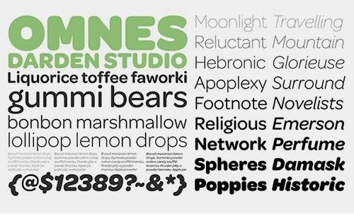 Darden has created a variety of different typefaces that get used for various applications. Some are more specialized while others can be used in many different applications. One such font is Omnes. It is clear and easy to read while still looking distinct, unique and giving off a friendly vibe. Thus, it is perfect for user interfaces, program applications, and websites as well as being used for branding and identity systems or even content/media aimed at children. It has been used by companies like Cricket Wireless to deliver a customer friendly vibe, Comedy Central to provide a mixture of professionalism and light heartedness, and wellness brands to create texts for their packaging for organic products proving it is versatile and suitable for diverse usages. The main appeal of the font is its ability to emit a feeling of trustworthiness but not being too serious.